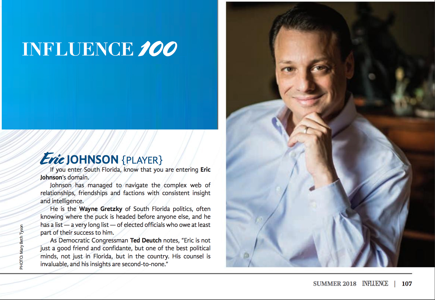 Eric Johnson was selected as one of the 100 most influential people in Florida by Influence Magazine in both 2016 and 2018